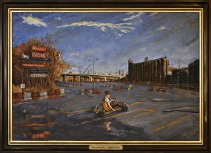 - Dean Olson in a DAP Kart, oil on panel, 38 x 52 inches